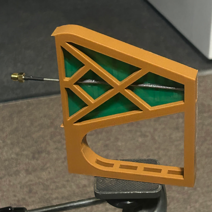 It came out pretty rough, I did zero optimizations and literally just exported the model and printed it. Thankfully, this is still enough to make sure it all works. I spent a good chunk of time using a soldering iron expanding the hole where the SMA port was supposed to go and then tried to tune it using a LiteVNA64.