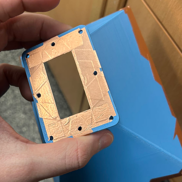 The second version performed really well, but, I think there might have been some issues with the conductivity between the components of the device. The only real difference between this one revision and the last one is that I added more screw holes to really keep it tight. The second thing I did was apply more copper tape between the components to ensure there was as much contact as possible.